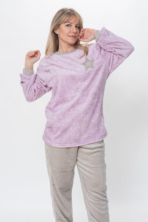 - Part Superior Violeta : El color violeta vibrant de la part de dalt afegeix un toc femení i modern al teu vestit de descans.