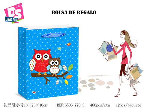 Pack 12 Bolsas Papel de Regalo 18x23x10cm Diseño Buhos