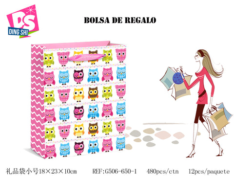 Pack 12 Bolsas Papel de Regalo 18x23x10cm Diseño Buhos varios
