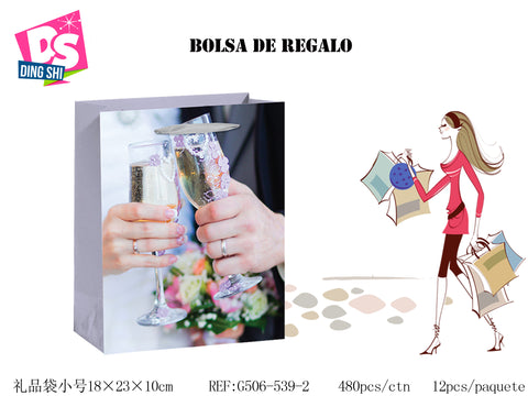 Pack 12 Bolsas Papel de Regalo 18x23x10cm Diseño Champán