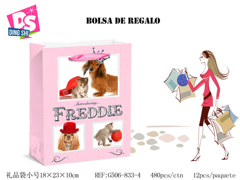 Pack 12 Bolsas Papel de Regalo 18x23x10cm Diseño Perro Firuláis