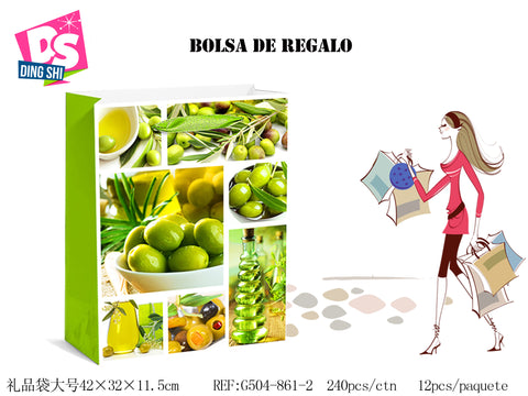 Pack 12 Bolsas Papel de Regalo 18x23x10cm Diseño Verde Aceituna