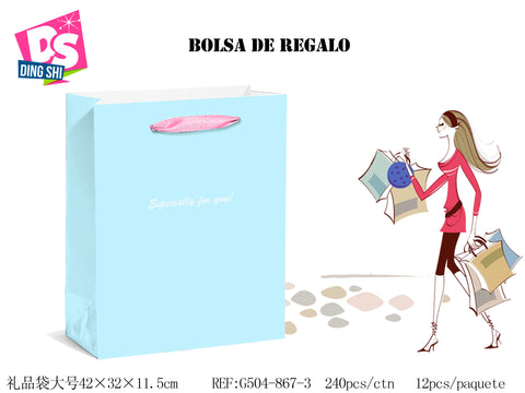 Pack 12 Bolsas Papel de Regalo 26x32x12,5cm Diseño Azul Especially for You