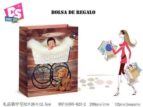 Pack 12 Bolsas Papel de Regalo 26x32x12,5cm Diseño Bebé y Teddy
