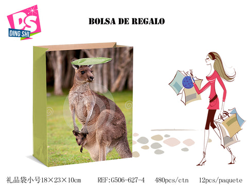 Pack 12 Bolsas Papel de Regalo 26x32x12,5cm Diseño Canguro