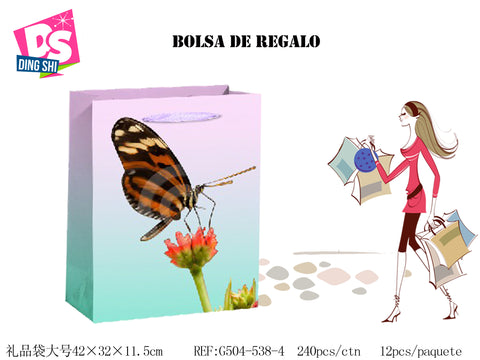 Pack 12 Bolsas Papel de Regalo 26x32x12,5cm Diseño Mariposa