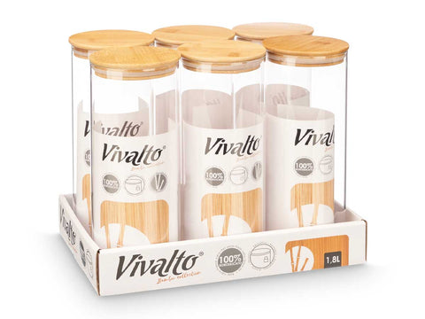 Tarro Redondo Borosilicato 1,8 Litros Tapa Bambú