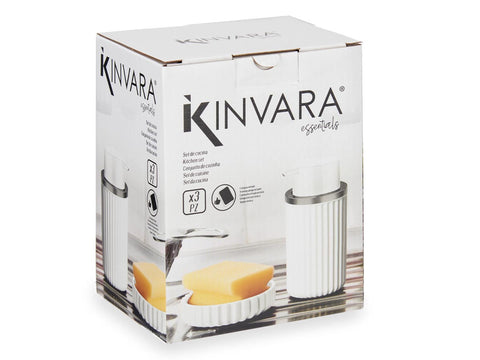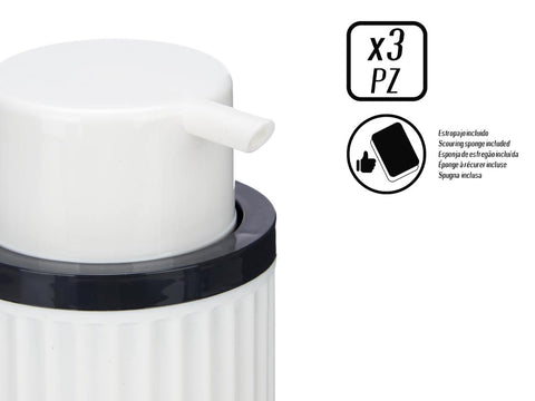 Este set de cocina ofrece una solución práctica y elegante para mantener tu espacio de cocina organizado y limpio. Con su dosificador de 300 ml y su estropajo blanco, podrás realizar tus labores diarias con comodidad y estilo. Además, el jabonero y el dispensador tienen dimensiones ideales para un fácil manejo y almacenamiento. Perfecto para agregar funcionalidad y estética a tu cocina.