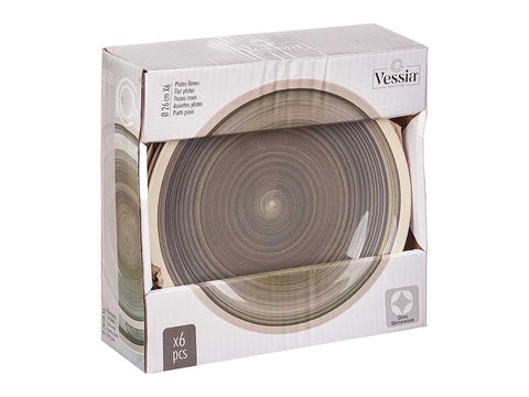 Pack 6 Platos Llanos Grandes Gres Gris Borde