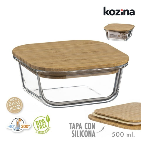 Fiambrera Cuadrada Tapa Bambú 500ml