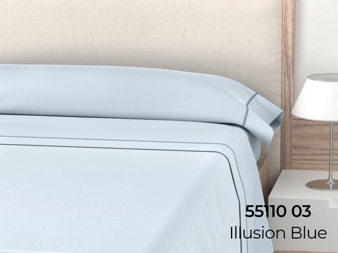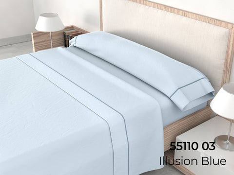 Juego de Sábanas Lisas cama 135cm Azul ''Illusion Blue'' 50% Algodón 50% Poliéster