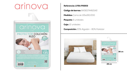 Protector de Colchón Rizo cama 135cm Lyra 135x190/200cm Arinova