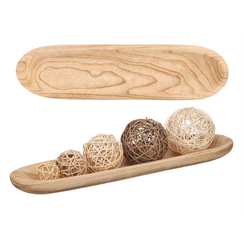 Aporta calidez y estilo natural a tu hogar con este elegante centro decorativo alargado de madera quemada. Su diseño de líneas suaves y forma ovalada lo convierte en el complemento perfecto para mesas, estanterías o consolas. Ideal para combinar con elementos decorativos como esferas, velas o flores secas. Fabricado en madera natural, cada pieza presenta vetas únicas que aportan un toque auténtico y acogedor.