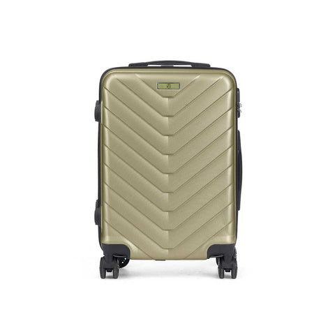 Combina funcionalidad, ligereza y estilo con esta maleta de cabina en color verde metálico y diseño en relieve tipo escama. Compacta y resistente, es perfecta para acompañarte en escapadas, viajes cortos o como equipaje de mano en avión.